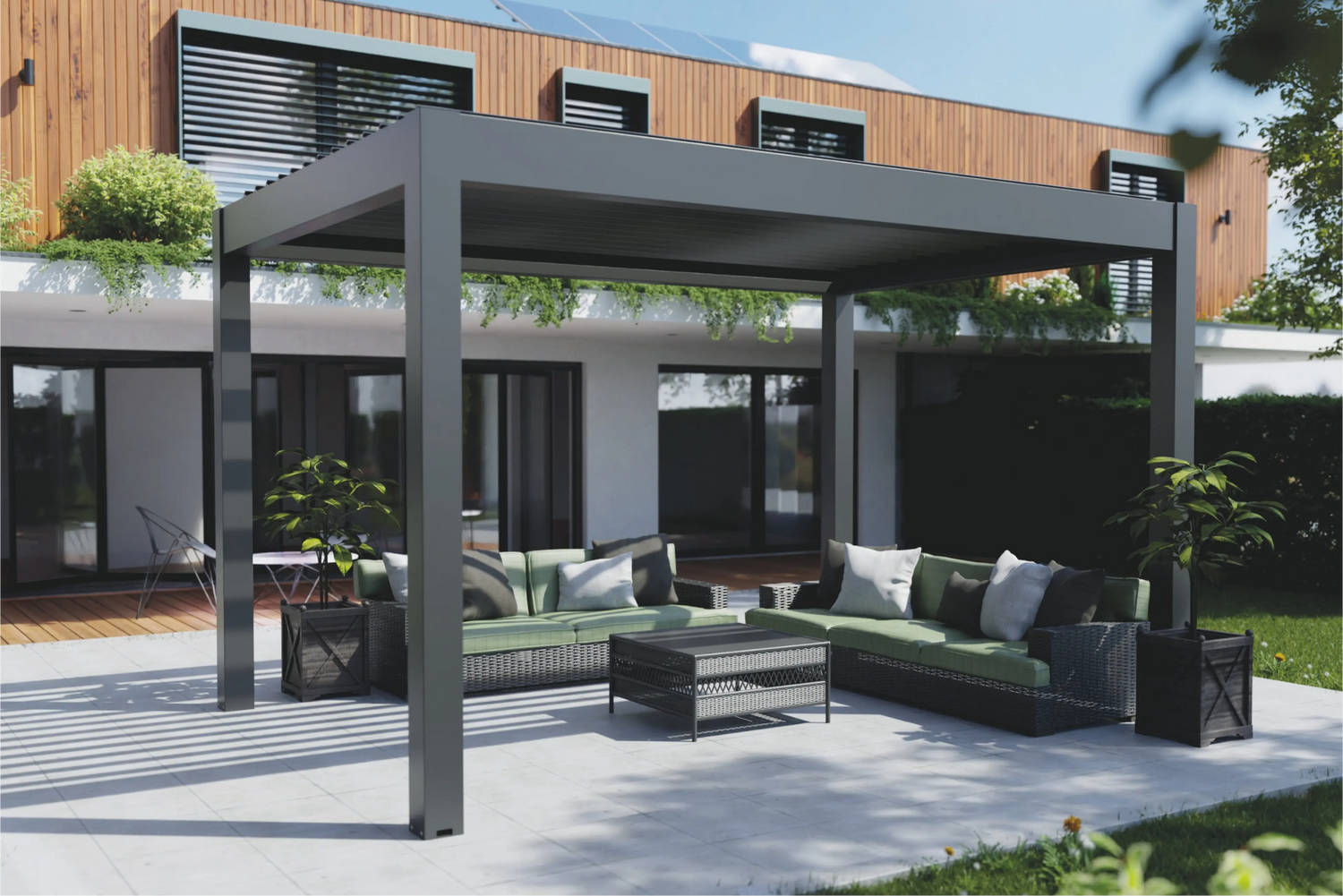 Le pergole bioclimatiche creano uno spazio esterno vivibile semplicemente utilizzando le energie naturali